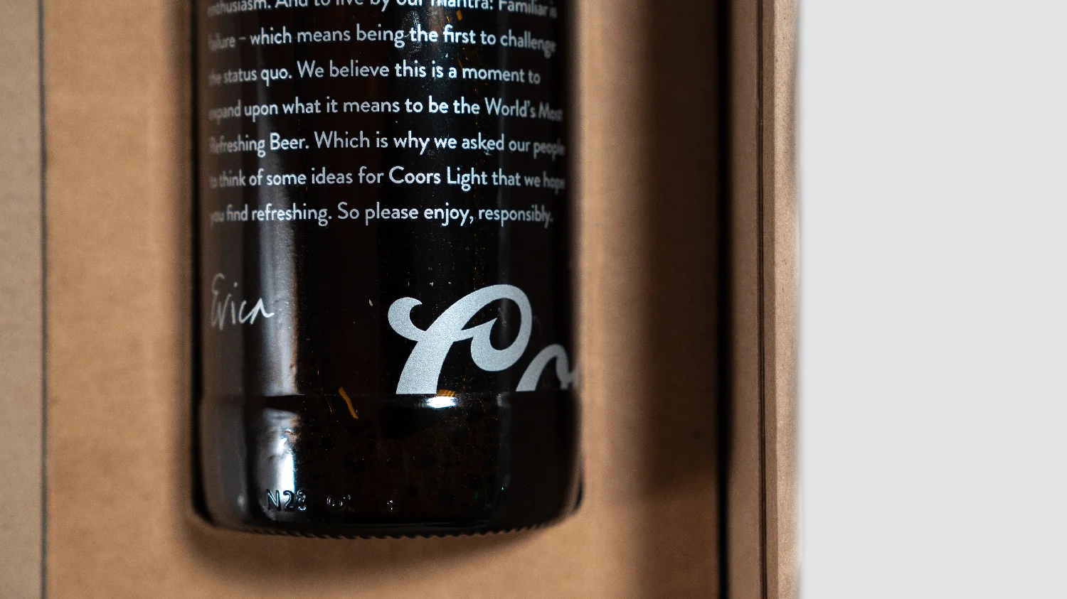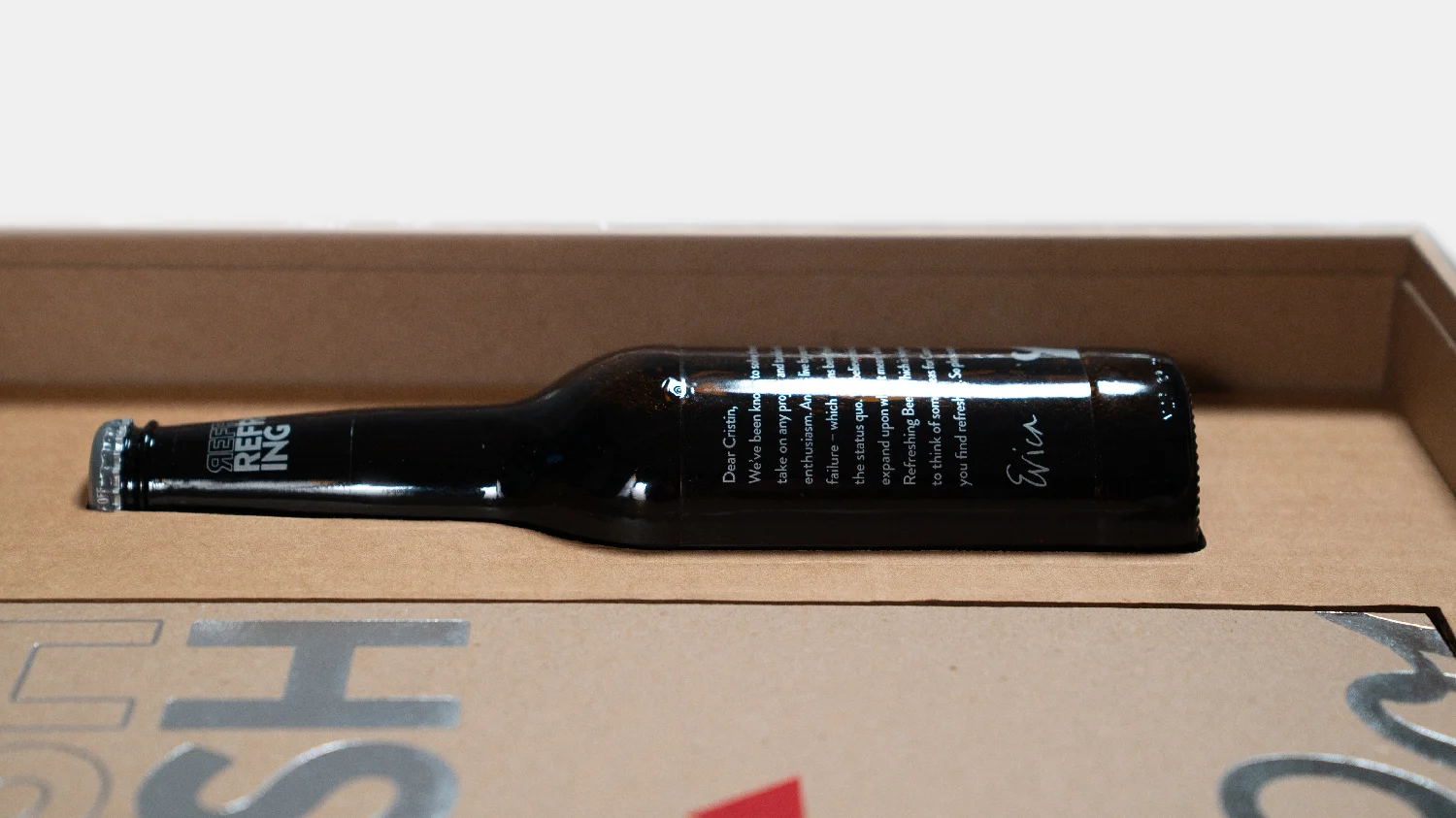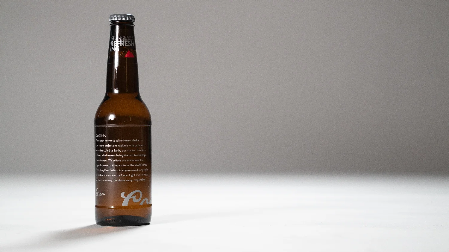 Clear laminate label on bottle PMS 877 Silver + PMS 186 Red + Opaque White