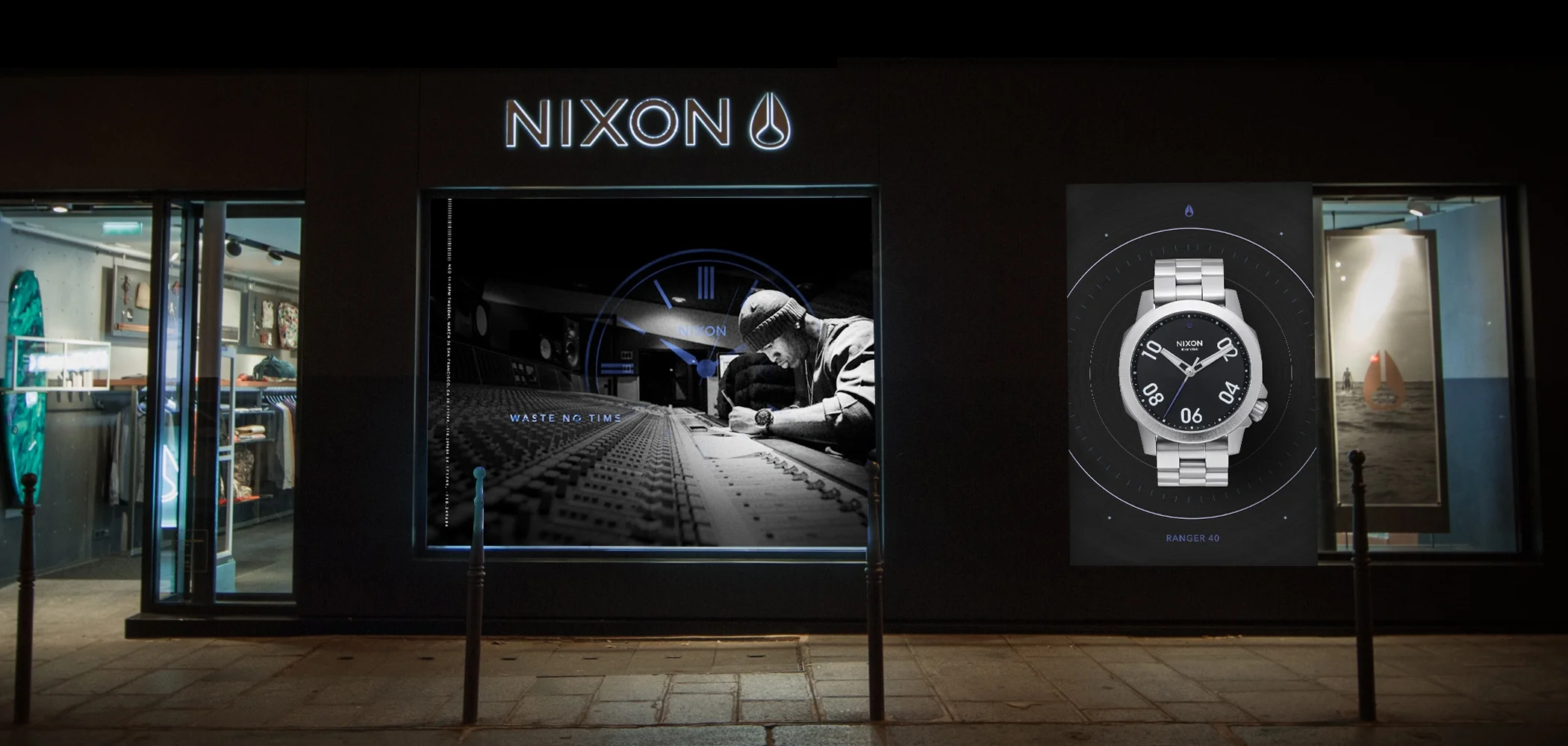 I was asked to Develop the visual language for "Waste no Time" the campaign idea for Nixon in 2015.